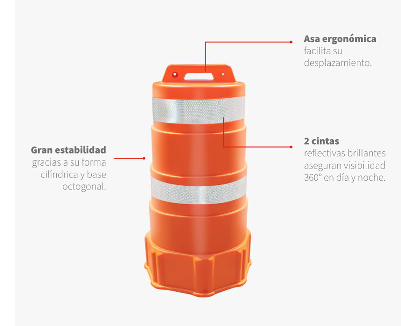 Descubre nuestro cilindro de seguridad, confeccionado con polietileno de alta densidad, un material que le confiere una resistencia excepcional a impactos y golpes intensos. Tu seguridad es nuestra prioridad, y con este cilindro, garantizamos un nivel superior de protección y durabilidad.